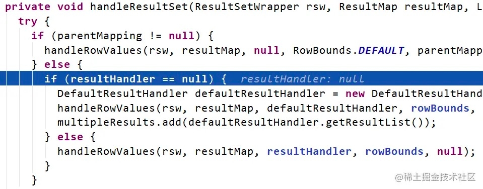 OK ,下面我们开始走 handleResultSets 的逻辑。