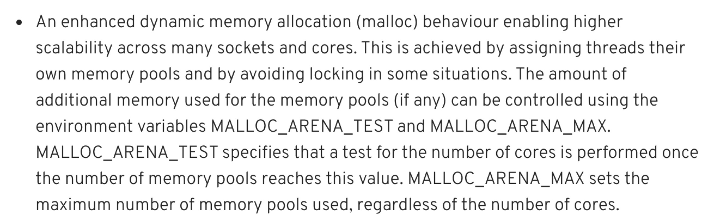 到此,基本上可以确定是内存分配器在捣鬼;搜索了一下glibc 64M,发现glibc从2.11开始对每个线程引入内存池(64位机器大小就是64M内存),原文如下: