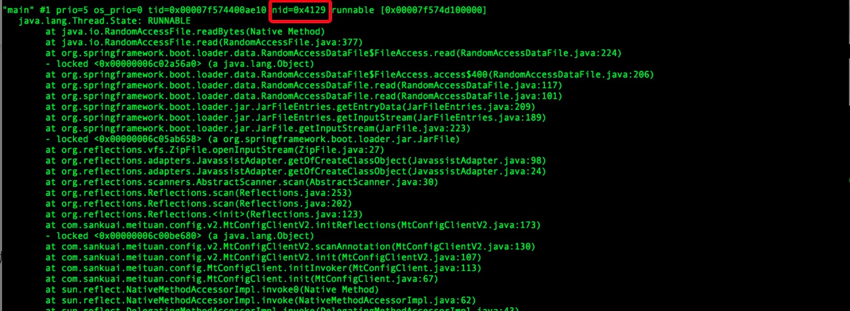 这里基本上就可以看出问题来了:MCC(美团统一配置中心)使用了Reflections进行扫包,底层使用了Spring Boot去加载JAR。因为解压JAR使用Inflater类,需要用到堆外内存,然后使用Btrace去追踪这个类,栈如下: