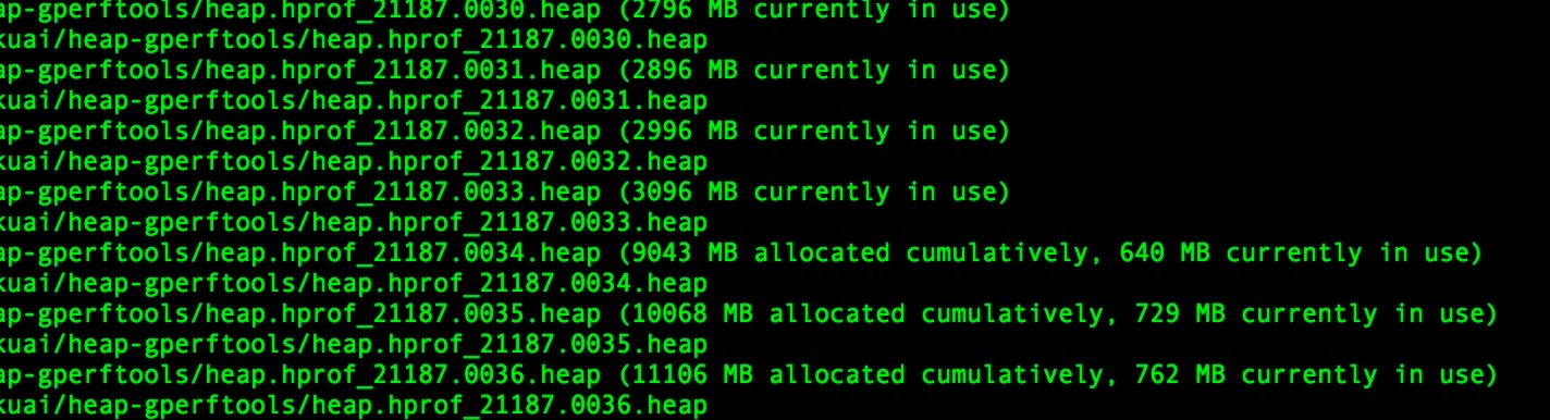 通过在自定义分配器当中埋点可以发现其实程序启动之后应用实际申请的堆外内存始终在700M-800M之间,gperftools监控显示内存使用量也是在700M-800M左右。但是从操作系统角度来看进程占用的内存差别很大(这里只是监控堆外内存)。
