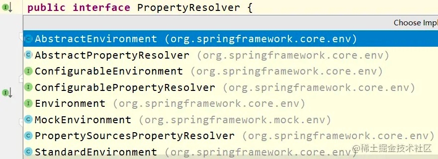 借助 IDE ,翻看 PropertyResolver 的子接口和实现类,发现仅仅就这么几个而已: