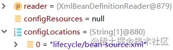 Debug 至此处,同样也能发现 reader 与 configLocations 都准备好了: