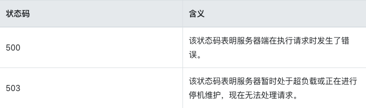 以 5xx 为开头的响应标头都表示服务器本身发生错误。