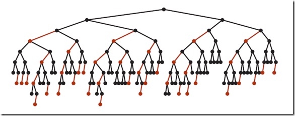 下图是一个典型的红黑树,从中可以看到最长的路径(红黑相间的路径)是最短路径的2倍: