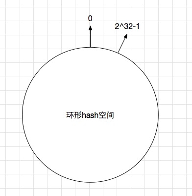 使用常见的hash算法可以把一个key值哈希到一个具有2^32个桶的空间中。也可以理解成,将key值哈希到 [0, 2^32) 的一个数字空间中。 我们假设这个是个首尾连接的环形空间。如下图: