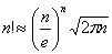 上式第二步缩放中应用了估计阶乘的斯特林公式: