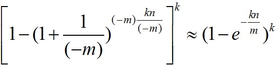 那么,对于所有的k个HASH函数,都没有把这个位设置为1的概率是:
