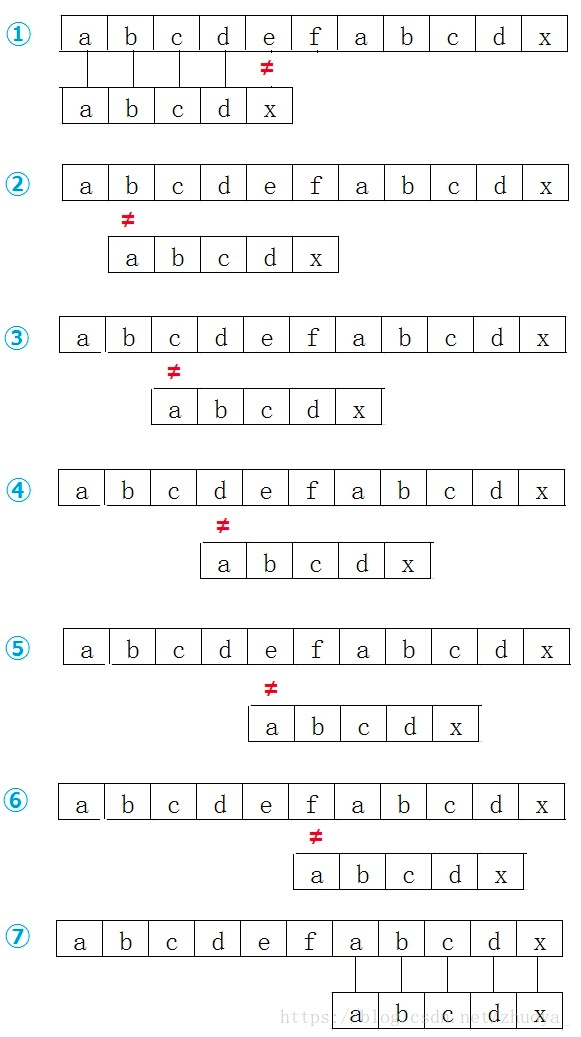 朴素的字符串匹配算法又称为暴力匹配算法(Brute Force Algorithm),最为简单的字符串匹配算法。