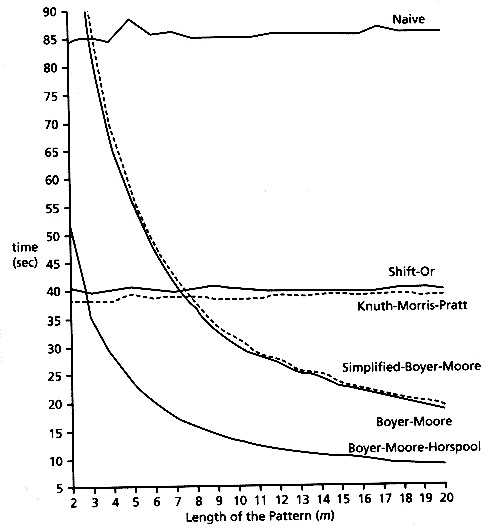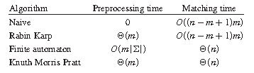 上图描述了常见字符串匹配算法的预处理和匹配时间。
