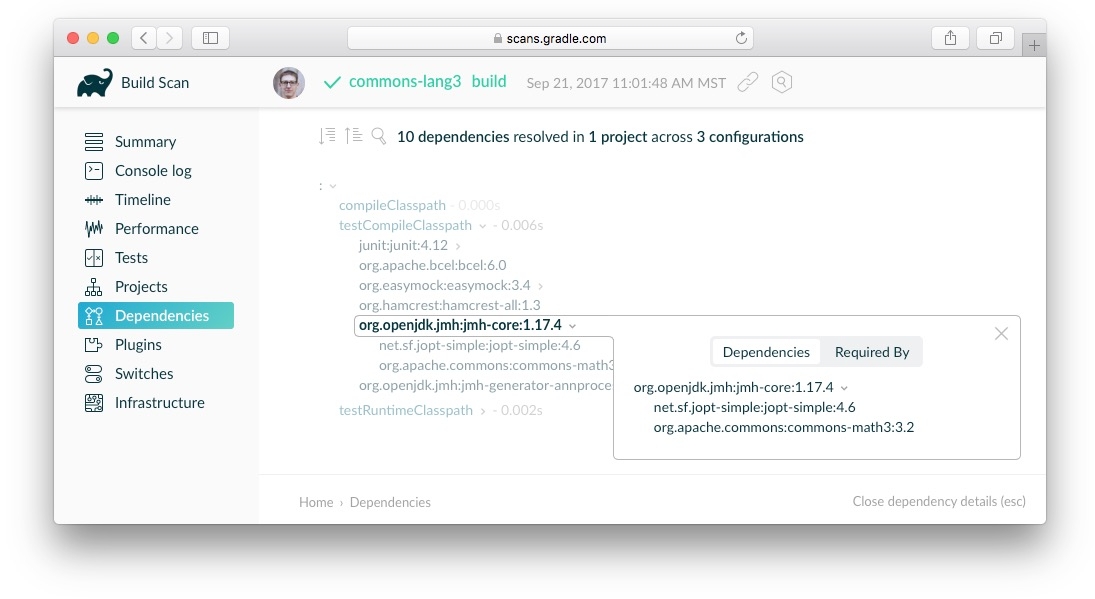 Finally, Gradle provides an interactive web-based UI for debugging and optimizing builds: build scans. These can also be hosted on-premise to allow an organization to collect build history and do trend analysis, compare builds for debugging, or optimize build times.