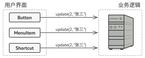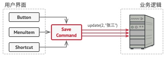最后, 命令成为了减少 GUI 和业务逻辑层之间耦合的中间层。 而这仅仅是命令模式所提供的一小部分好处!