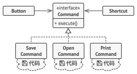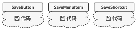 我们的程序最初只有工具栏, 因此可以使用按钮子类来实现各种不同操作。 换句话来说, 复制按钮CopyButton子类包含复制文字的代码是可行的。 在实现了上下文菜单、 快捷方式和其他功能后, 你要么需要将操作代码复制进许多个类中, 要么需要让菜单依赖于按钮, 而后者是更糟糕的选择。