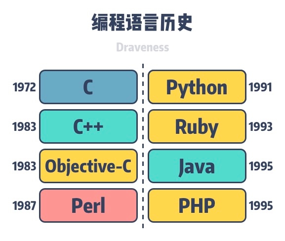 我们今天熟悉的大多数编程语言都是在上世纪 80 ~ 90 年代诞生的,包括 C++、Python、Ruby、Java、PHP 和 JavaScript,大多数的语言都是面向对象语言,而书中介绍的设计模式也都是在使用面向对象语言的项目中总结的。