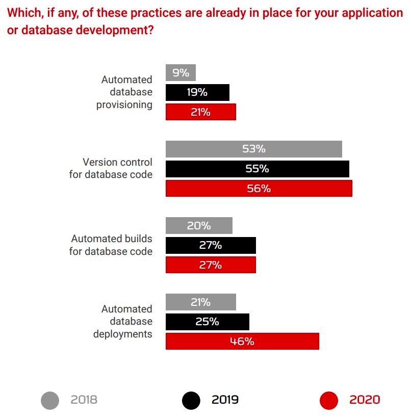 For most application developers, it’s unthinkable to work without version control. The benefits of tracking and retaining an incremental history of code changes are long understood in the world of software development. No surprise then that 80% of respondents in our 2020 State of Database DevOps survey confirmed they’re already using this practice for their application code.