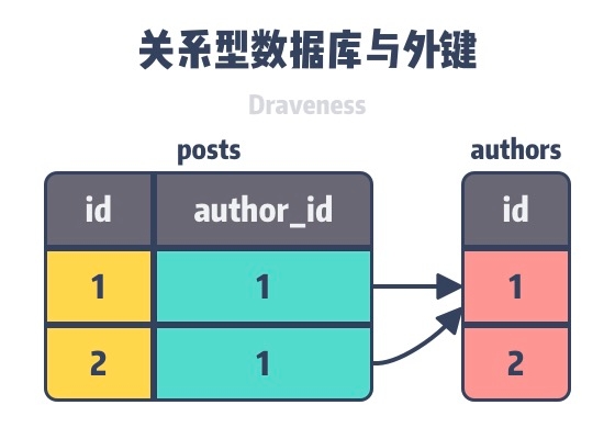 REFERENCES authors(id);上述 SQL 语句可以向关系表中增加外键约束,该 SQL 语句的执行前提是 posts 表中存在 author_id 字段。从 SQL 语句中的 CONSTRAINT 关键字我们也能推测出外键不是一种数据类型,它是不同关系表之间的约束。