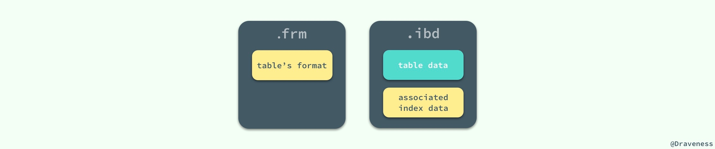 MySQL 使用 InnoDB 存储表时,会将表的定义和数据索引等信息分开存储,其中前者存储在 .frm 文件中,后者存储在 .ibd 文件中,这一节就会对这两种不同的文件分别进行介绍。