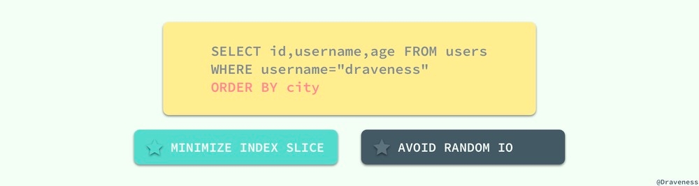 (username, city, age) 索引对于该查询其实就是一个三星索引了,有关索引设计的内容可以阅读上一篇文章 MySQL 索引设计概要 如果读者有充足的时间依然强烈推荐 数据库索引设计与优化 这本书。