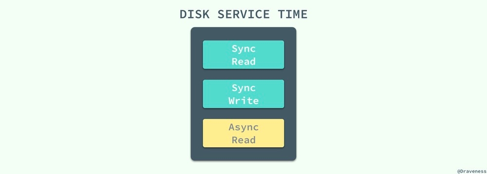 QUBE 在计算的过程中会忽略除了磁盘排队时间的其他排队时间,这样能够简化整个评估流程,而磁盘的服务时间主要还是包括同步读写以及异步读几个部分: