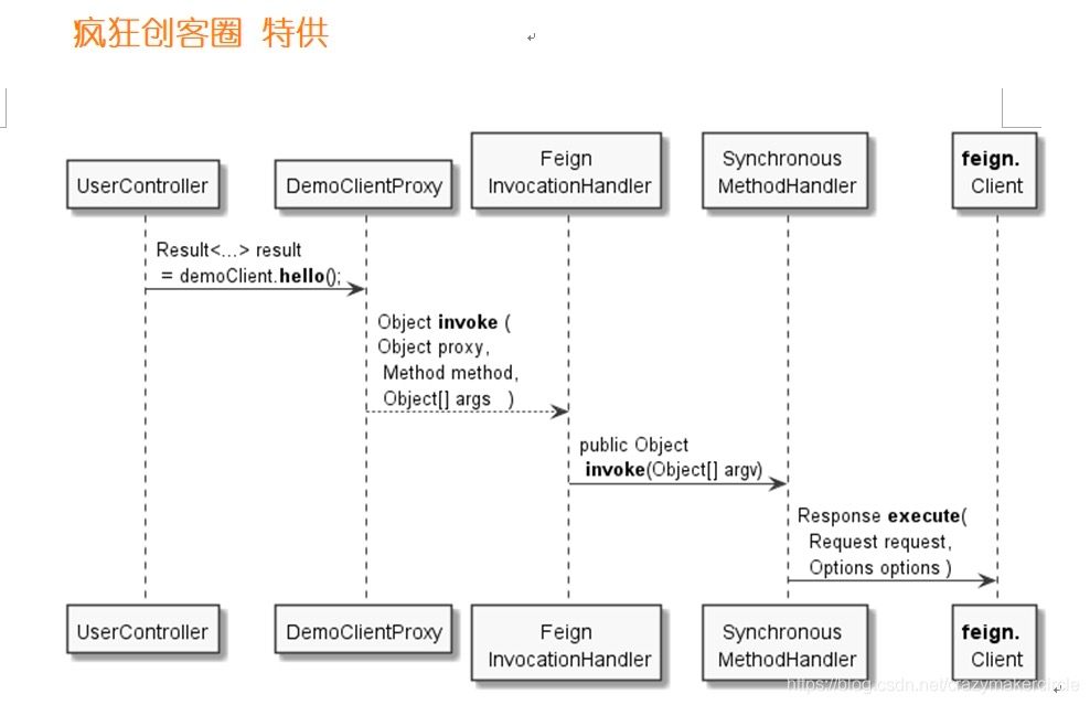 通过前面关于 MethodHandler 方法处理器的非常详细的组件介绍,大家都知道,feign默认的方法处理器为 SynchronousMethodHandler,其invoke(…)方法主要是通过内部成员feign客户端成员 client,完成远程 URL 请求执行和获取远程结果。