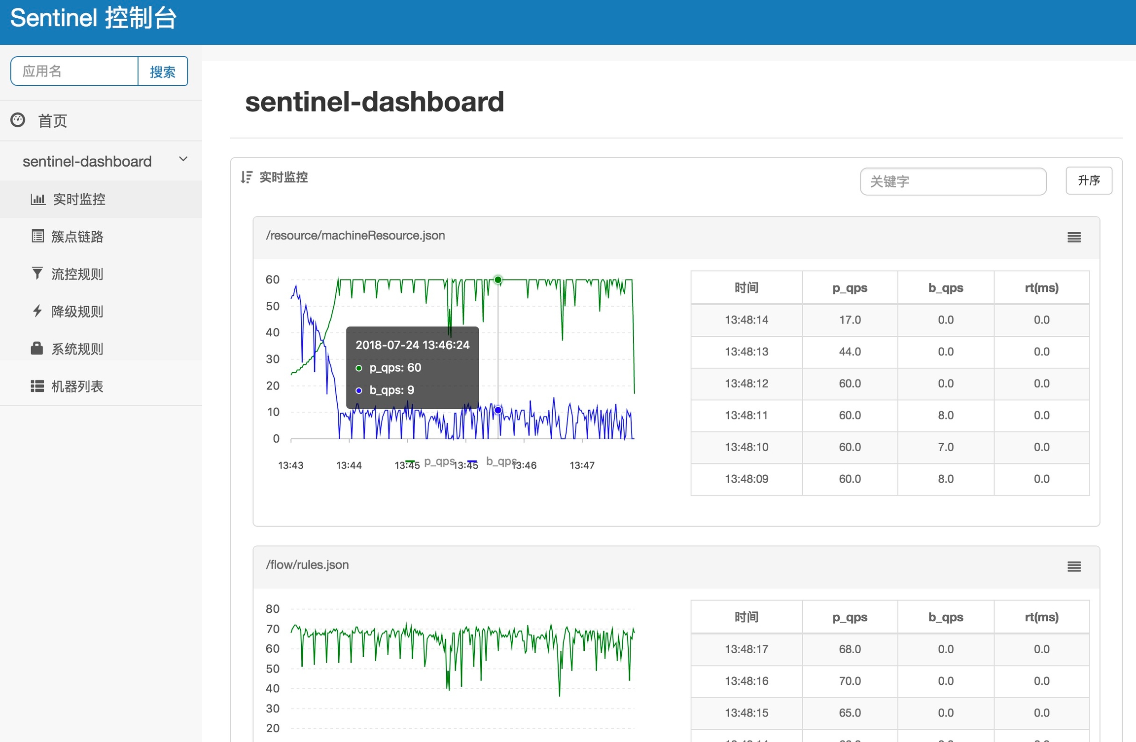 Sentinel 控制台(Dashboard)提供了机器发现、配置规则、查看实时监控、查看调用链路信息等功能,使得用户可以非常方便地去查看监控和进行配置。