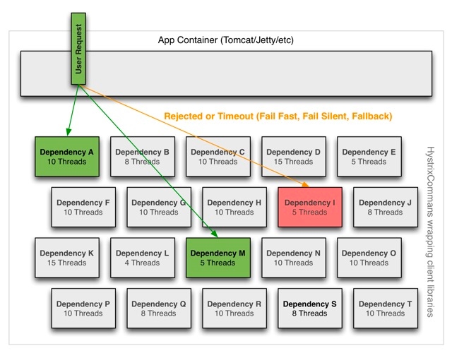 Note: Despite the isolation a separate thread provides, your underlying client code should also have timeouts and/or respond to Thread interrupts so it can not block indefinitely and saturate the Hystrix thread pool.