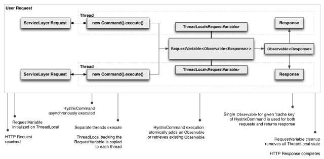 construct()orrun()method invocation, Hystrix can de-dupe calls before they result in thread execution.If Hystrix didn’t implement the request cache functionality then each command would need to implement it themselves inside the