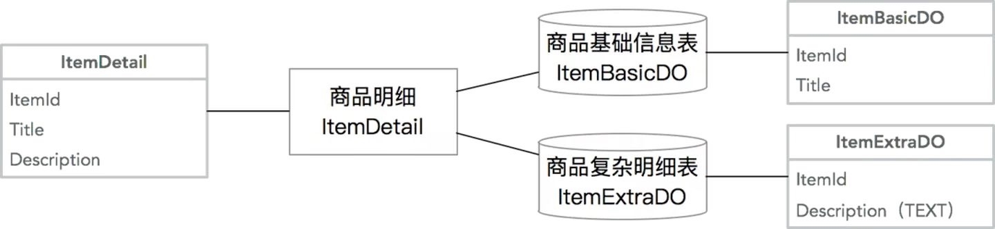 在实际开发中DO、Entity和DTO不一定是1:1:1的关系。一些常见的非1:1关系如下:复杂的Entity拆分多张数据库表:常见的原因在于字段过多,导致查询性能降低,需要将非检索、大字段等单独存为一张表,提升基础信息表的检索效率。常见的案例如商品模型,将商品详细描述等大字段单独保存,提升查询性能:
