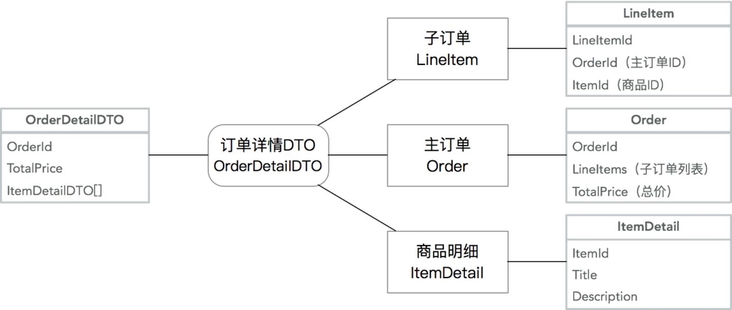 合并多个Entity为一个DTO:这种情况通常为了降低网络传输成本,降低服务端请求次数,将多个Entity、DP等对象合并序列化,并且让DTO可以嵌套其他DTO。同样常见的案例是在订单详情里需要展示商品信息: