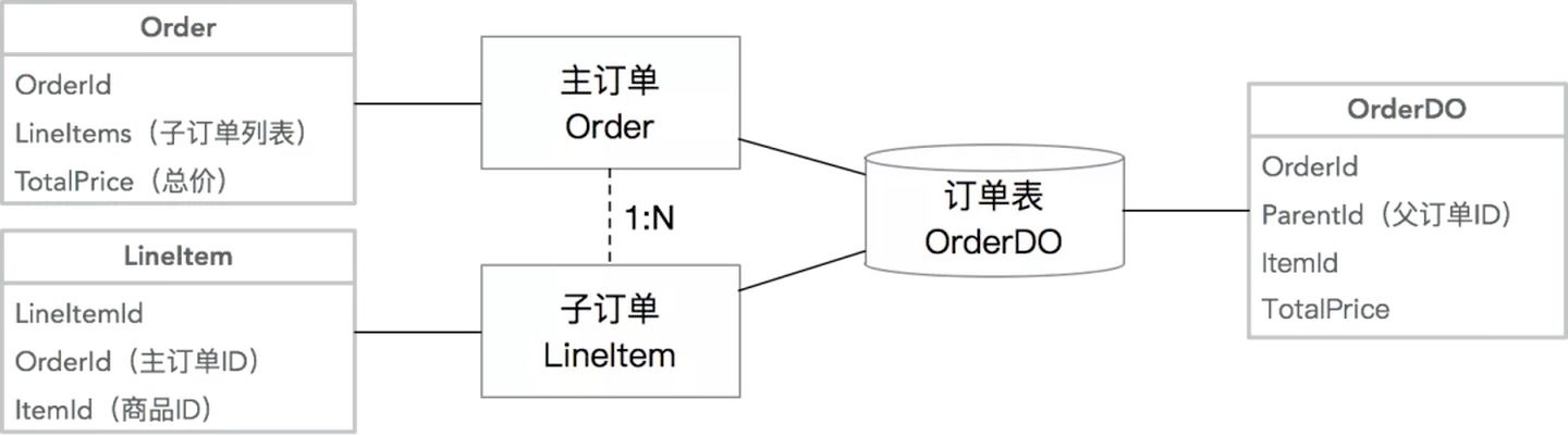 多个关联的Entity合并一张数据库表:这种情况通常出现在拥有复杂的Aggregate Root - Entity关系的情况下,且需要分库分表,为了避免多次查询和分库分表带来的不一致性,牺牲了单表的简洁性,提升查询和插入性能。常见的案例如主子订单模型: