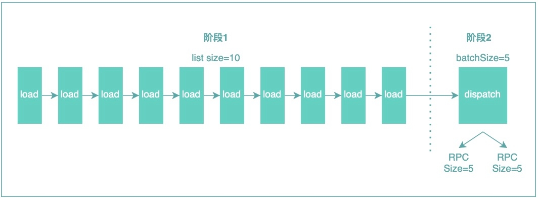 整体分为2个阶段,第一个阶段调用load,调用N次,第二个阶段调用dispatch,调用dispatch的时候会真正的执行数据查询,从而达到批量查询+分片的效果。