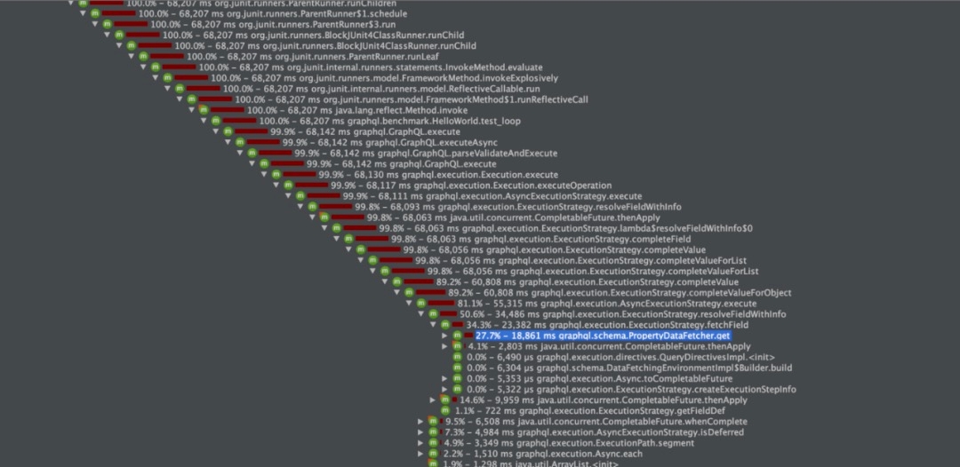 问题1:PropertyDataFetcherCPU热点问题,PropertyDataFetcher在整个查询过程中属于热点代码,而其本身的实现也有一些优化空间,在运行时PropertyDataFetcher的执行会成为CPU热点。(具体问题可参考GitHub上的commit和Conversion:https://github.com/graphql-java/graphql-java/pull/1815)