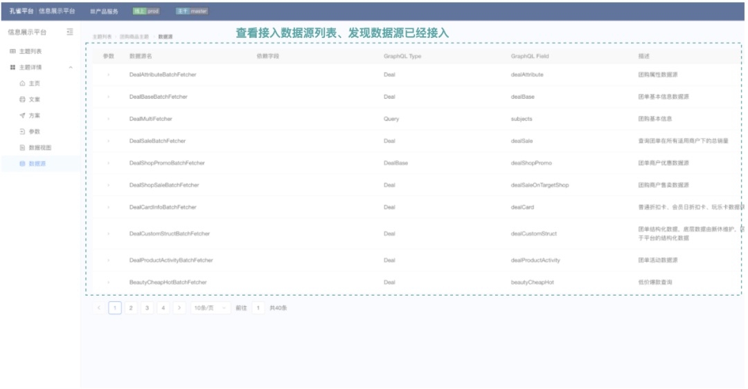 情况二:此时可能没有展示功能,但是通过运营平台查看到,数据源已经接入过,那么也不难,只需要基于现有的数据源编写一段加工逻辑即可,这段加工逻辑是非常爽的一段纯逻辑的编写,数据源列表如下示意图所示: