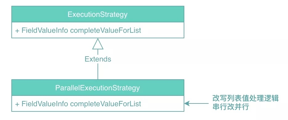 问题在于以上的实现在有些业务场景下是不能接受的,比如我们的列表场景的响应时间约束一共也就不到100ms,其中几十ms是因为这个原因搭进去的。针对这个问题的解决思路,一种方式是对于响应时间要求特别高的场景独立编排,不采用GraphQL;另一种方式是在GraphQL层面解决这个问题,保持架构的统一性。接下来,介绍一下我们是如何扩展GraphQL-Java执行引擎来解决这个问题的。