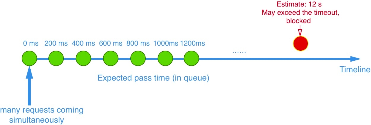 2020-08-11-0tuxj1 匀速器模式:利用 Leaky Bucket 算法实现的匀速模式,严格控制了请求通过的时间间隔,同时堆积的请求将会排队,超过超时时长的请求直接被拒绝。