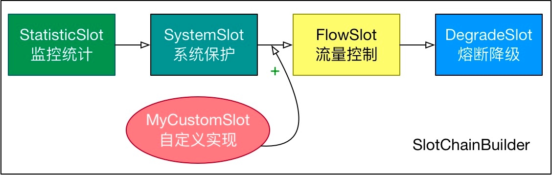 Sentinel 将 ProcessorSlot 作为 SPI 接口进行扩展(1.7.2 版本以前 SlotChainBuilder 作为 SPI),使得 Slot Chain 具备了扩展的能力。您可以自行加入自定义的 slot 并编排 slot 间的顺序,从而可以给 Sentinel 添加自定义的功能。