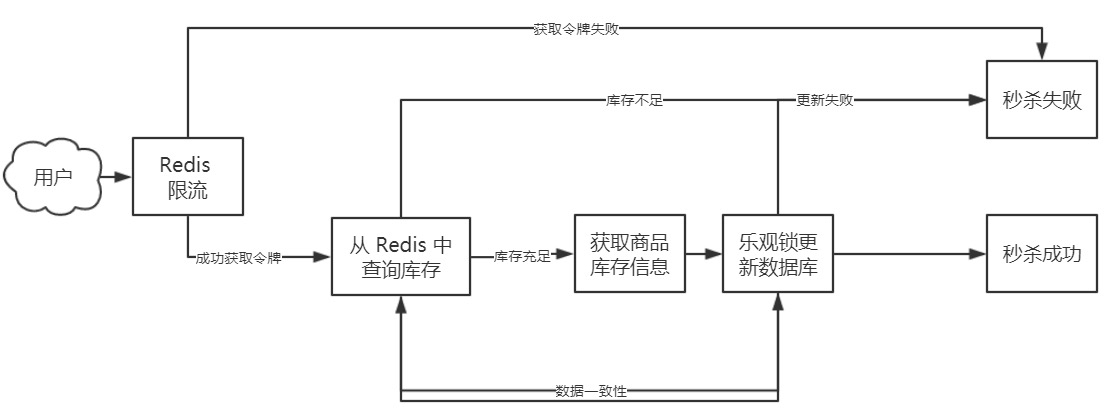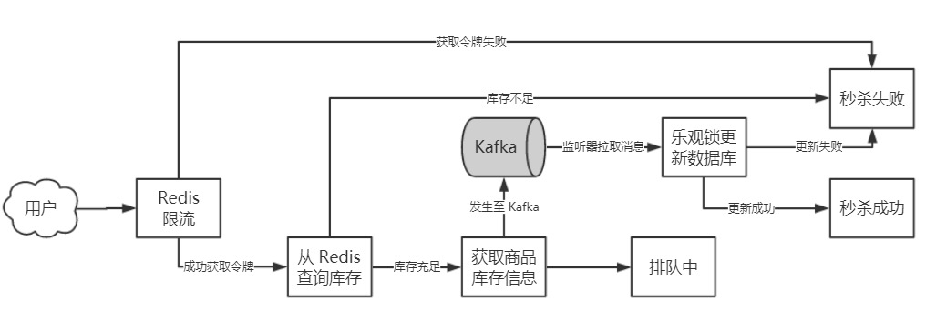 根据前面的优化分析,假设现在有 10 个商品,有 1000 个并发秒杀请求,最终只有 10 个订单会成功创建,也就是说有 990 的请求是无效的,这些无效的请求也会给数据库带来压力,因此可以在在请求落到数据库之前就将无效的请求过滤掉,将并发控制在一个可控的范围,这样落到数据库的压力就小很多