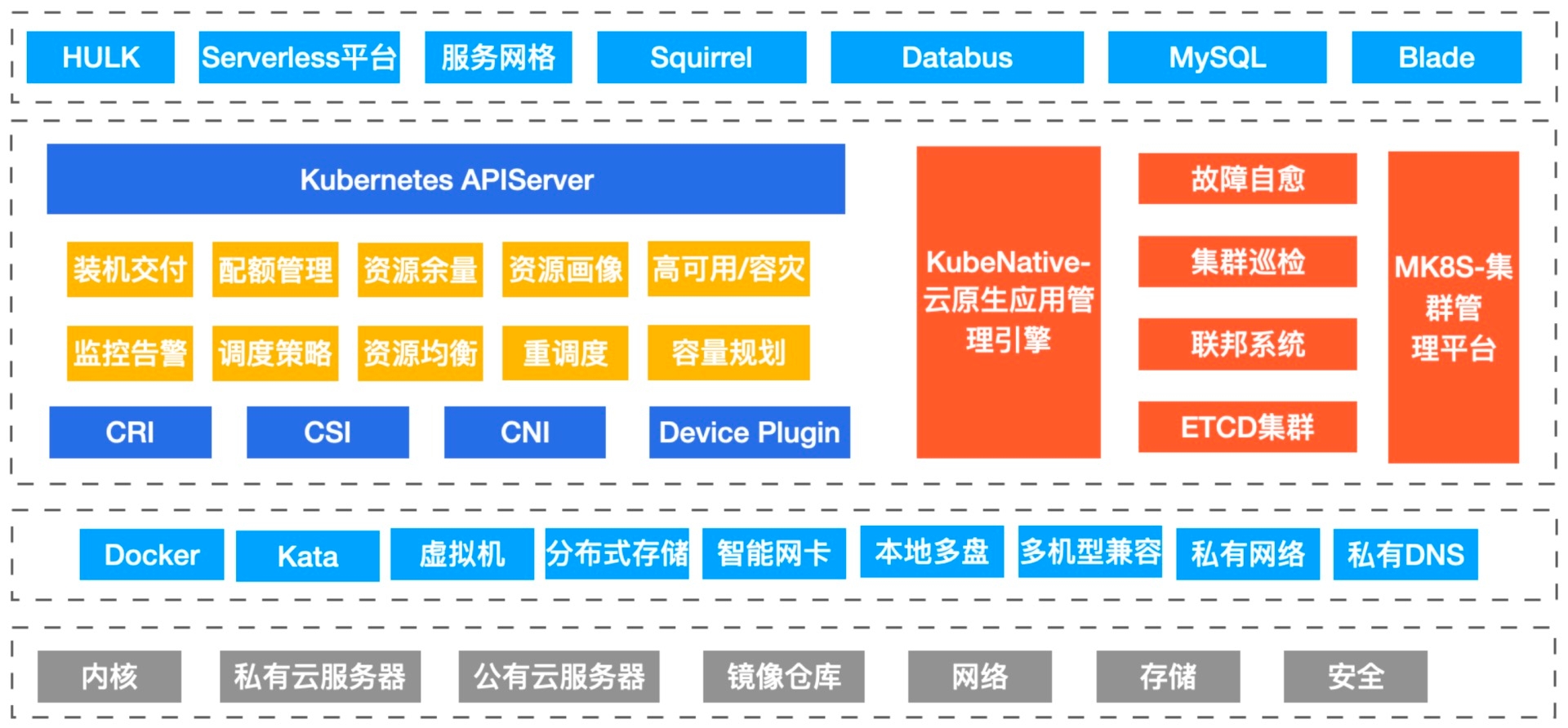 下图就是目前我们整个的云原生应用管理架构,已支持Hulk容器平台、Serverless以及TiDB等平台的落地。