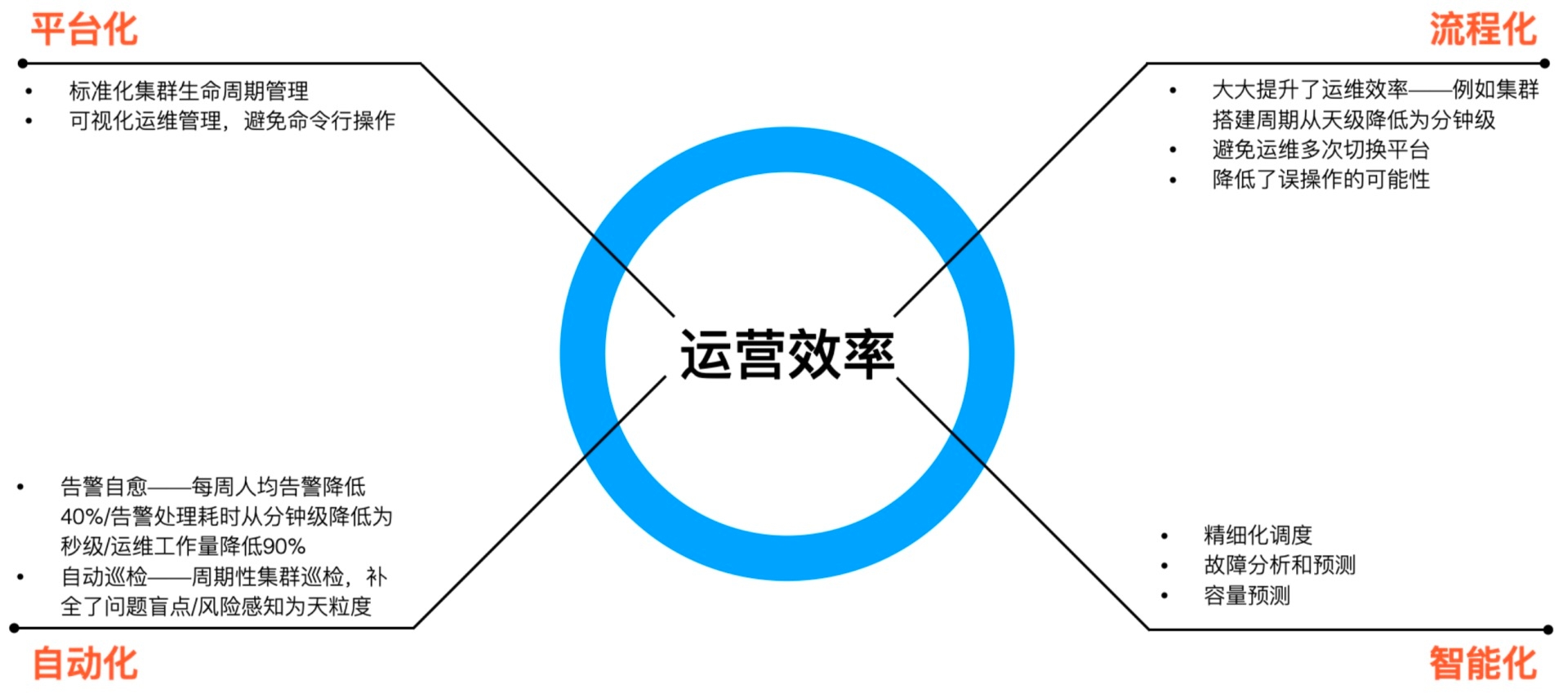 大规模的集群运营是非常有挑战的事情,满足业务的快速发展和用户需求也是对团队极大的考验,我们需要从不同纬度的考虑集群的运营和研发能力。