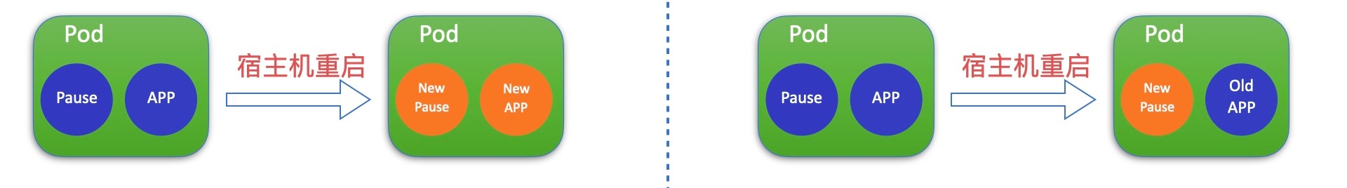 更新App容器映射的pauseID为新的pause容器ID,这样就建立了Pod下新的pause容器和原先App容器的映射。