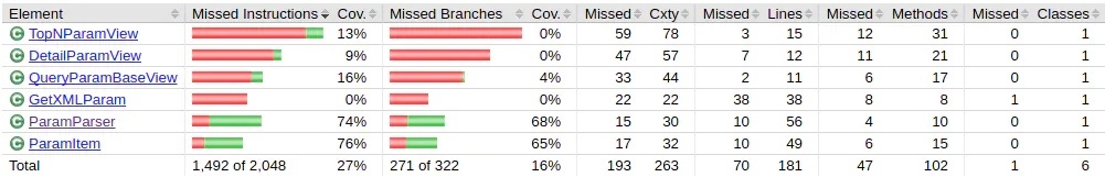 在经过与maven集成之后,生成的report文件在site/jacoco下,点开index.xml,即可查看生成报告。 包视图: