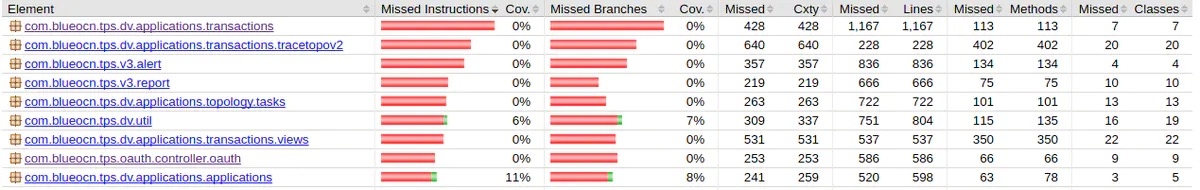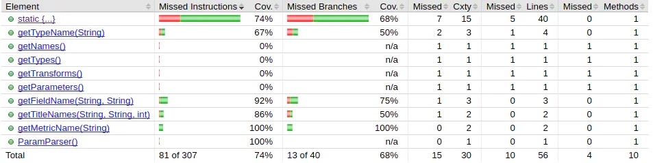 Jacoco从多种角度对代码进行了分析,包括指令(Instructions,C0 Coverage),分支(Branches,C1 Coverage),圈复杂度(Cyclomatic Complexity),行(Lines),方法(Methods),类(Classes)。