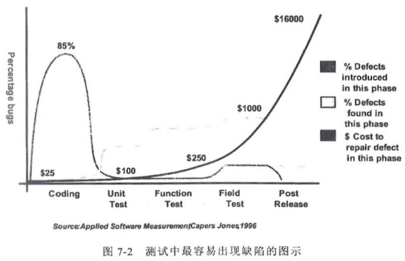 单元测试能更快地发现问题(见下图7-1)。