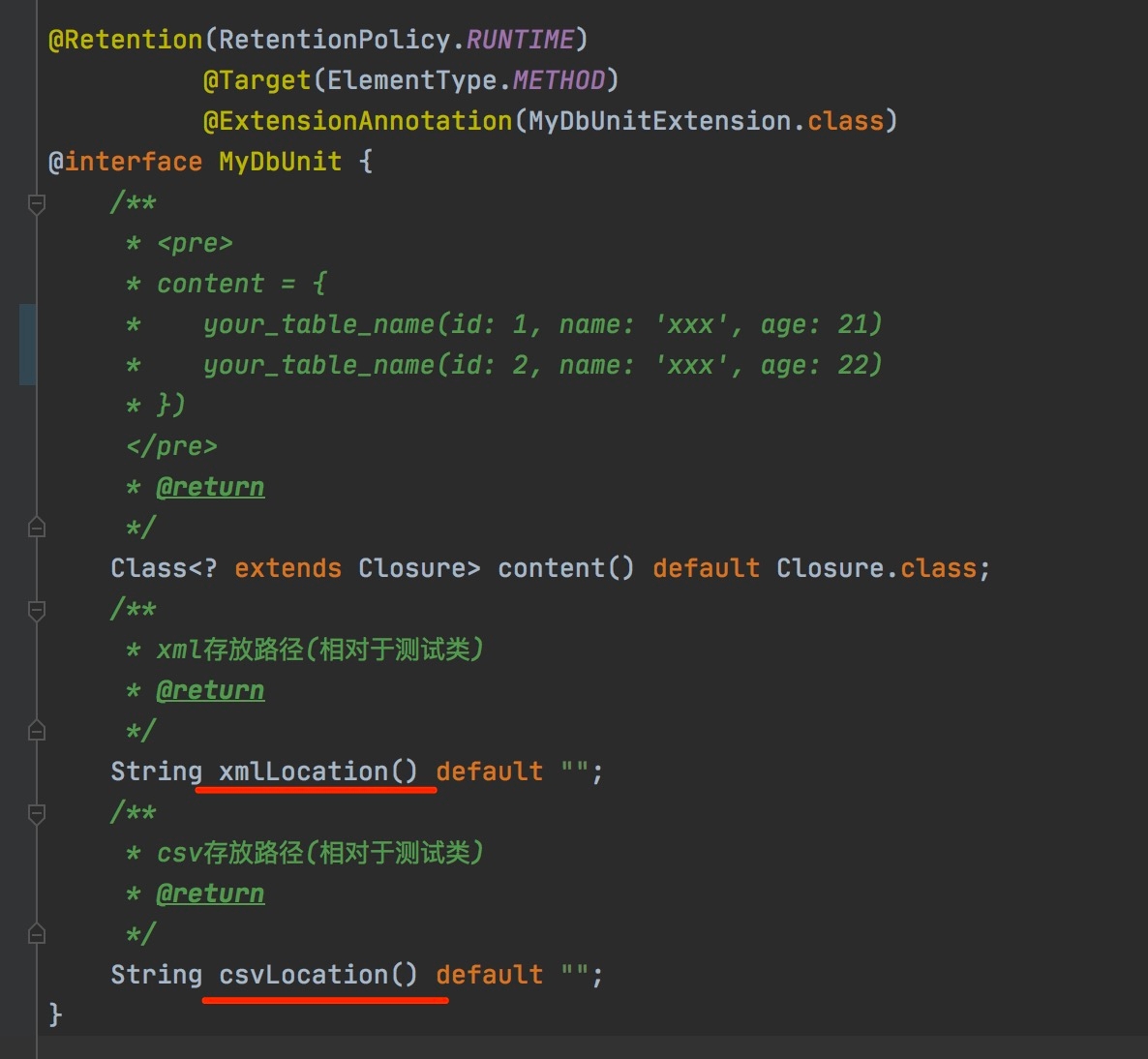 这里介绍一下主要内容,注解@MyDbUnit: